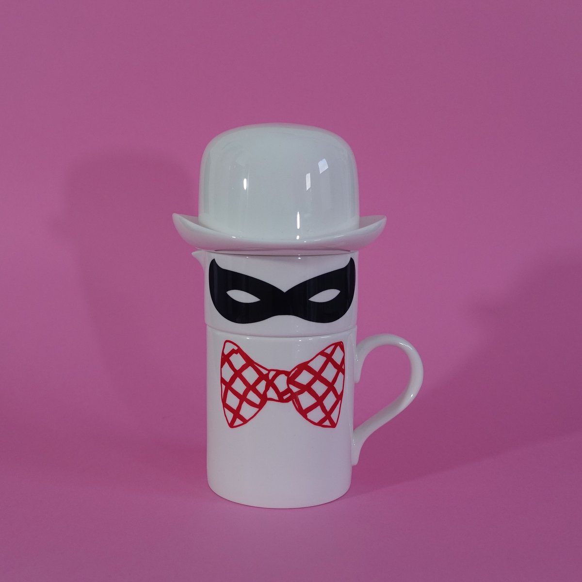 This set features a Red Bow tie mug with Zorro Mask milk jug.
